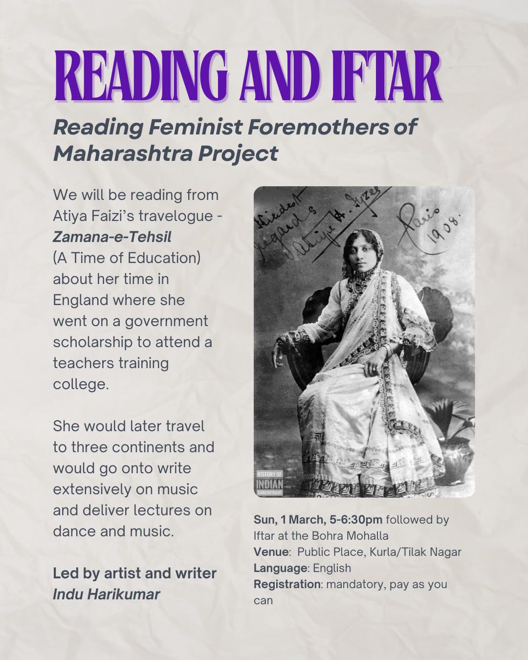 As some of you know, we’ve been holding reading circles to read the feminist foremothers of Maharashtra. The next one will be hosted by the Public Place in Tilak Nagar / Kurla, followed by Iftar at Bohra Mohalla. Here’s the invite.